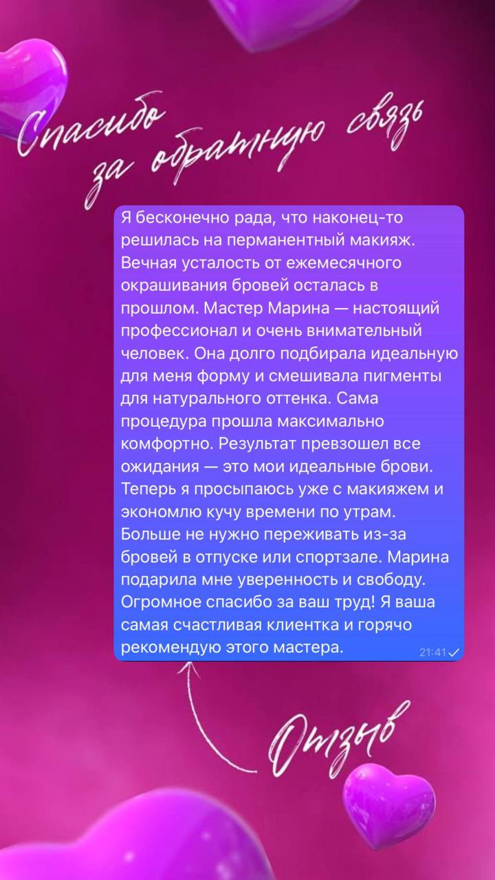 Сегодня я с радостью помогу вам раскрыть вашу естественную красоту — бережно, профессионально и с любовью к своему делу.